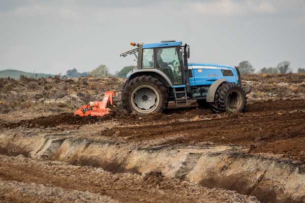 The turf being cut up with tractor machinery. Note the twin wheels front and rear to help spread its weight on the soft ground.