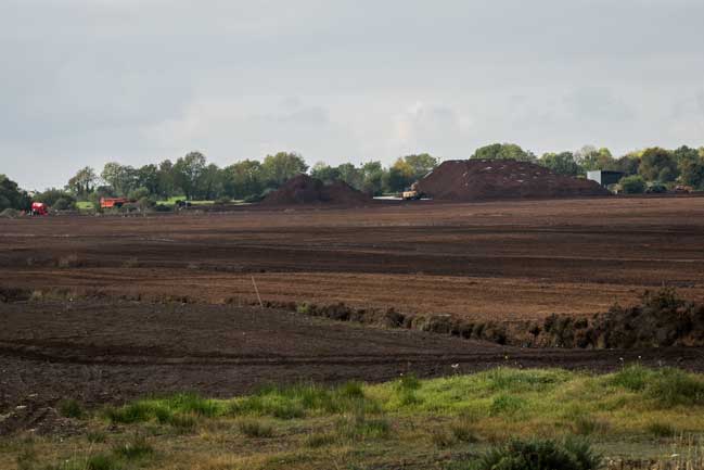 A peat bog that’s been striped and mounds off peat awaiting transport.
