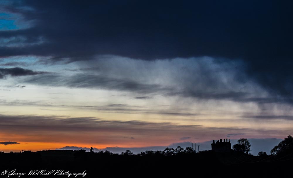 Down in Co.Kildare this evening, heavy rain showers and the light of day sinking into the darkness of night. Just has the rain eased and the sun dropped below the horizon, I pull over as Carbury Castle was just coming into view. Using a 70 – 300mm lens I grabbed a couple of photographs. So this is my Photograph for today.